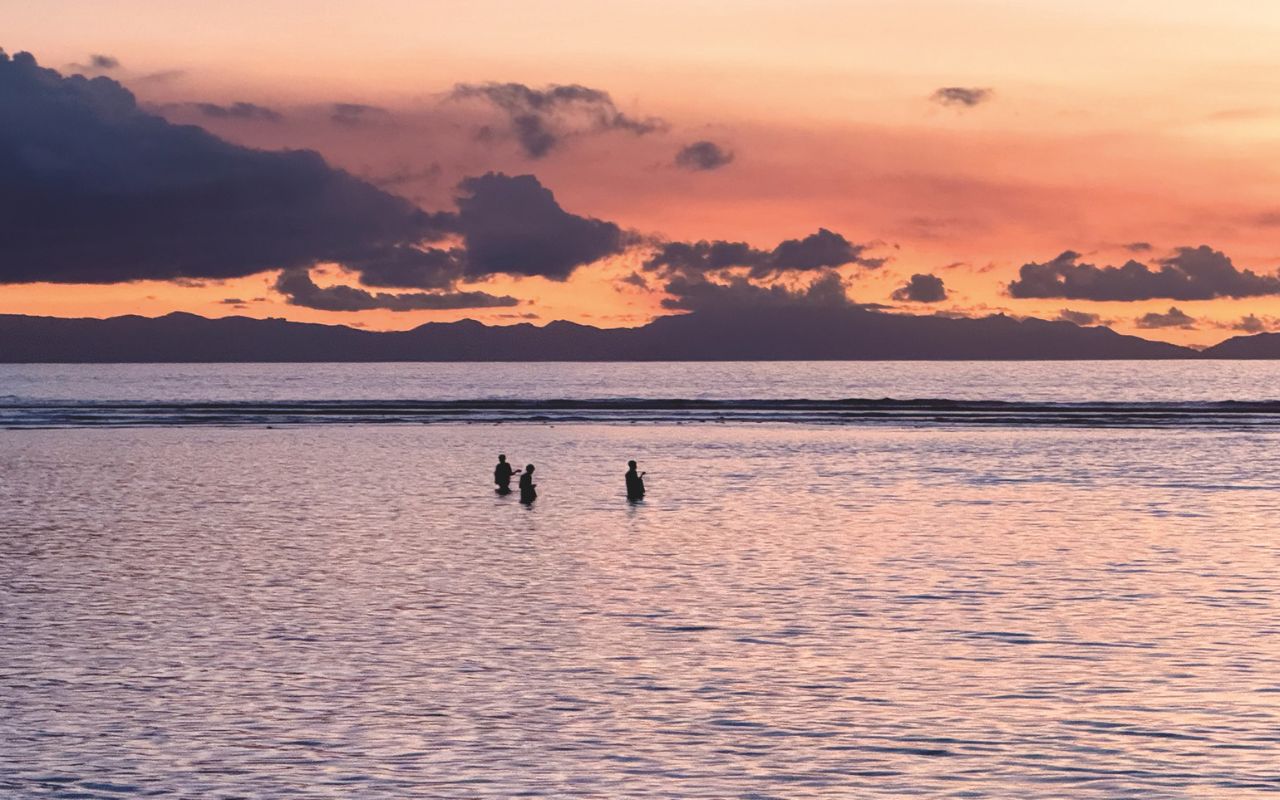 Le rocce sono irregolari, l’acqua si increspa, la luce non è mai identica a sé stessa. Il vero privilegio non è arrivarci, ma restarci senza fare nulla. Nel pomeriggio, l’aria si fa più morbida, si riempie di profumi di vaniglia e frangipane. In qualche veranda ombreggiata si intrecciano foglie di palma, si chiacchiera, si pulisce il pesce. Non c’è coreografia: è quotidianità. La sera, una spa affacciata sull’oceano. Olio di cocco tiepido, movimenti lenti, pelle che assorbe sale e silenzio. Il benessere vissuto non come performance, ma come restituzione.